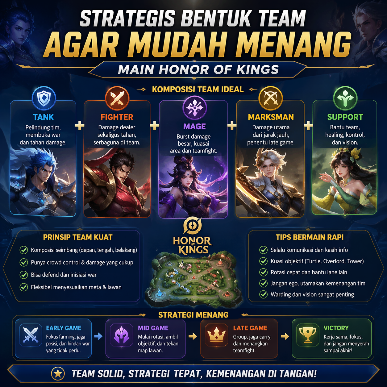 Strategis bentuk team agar mudah menang main Honor of Kings bukan sekadar soal skill individu,…
